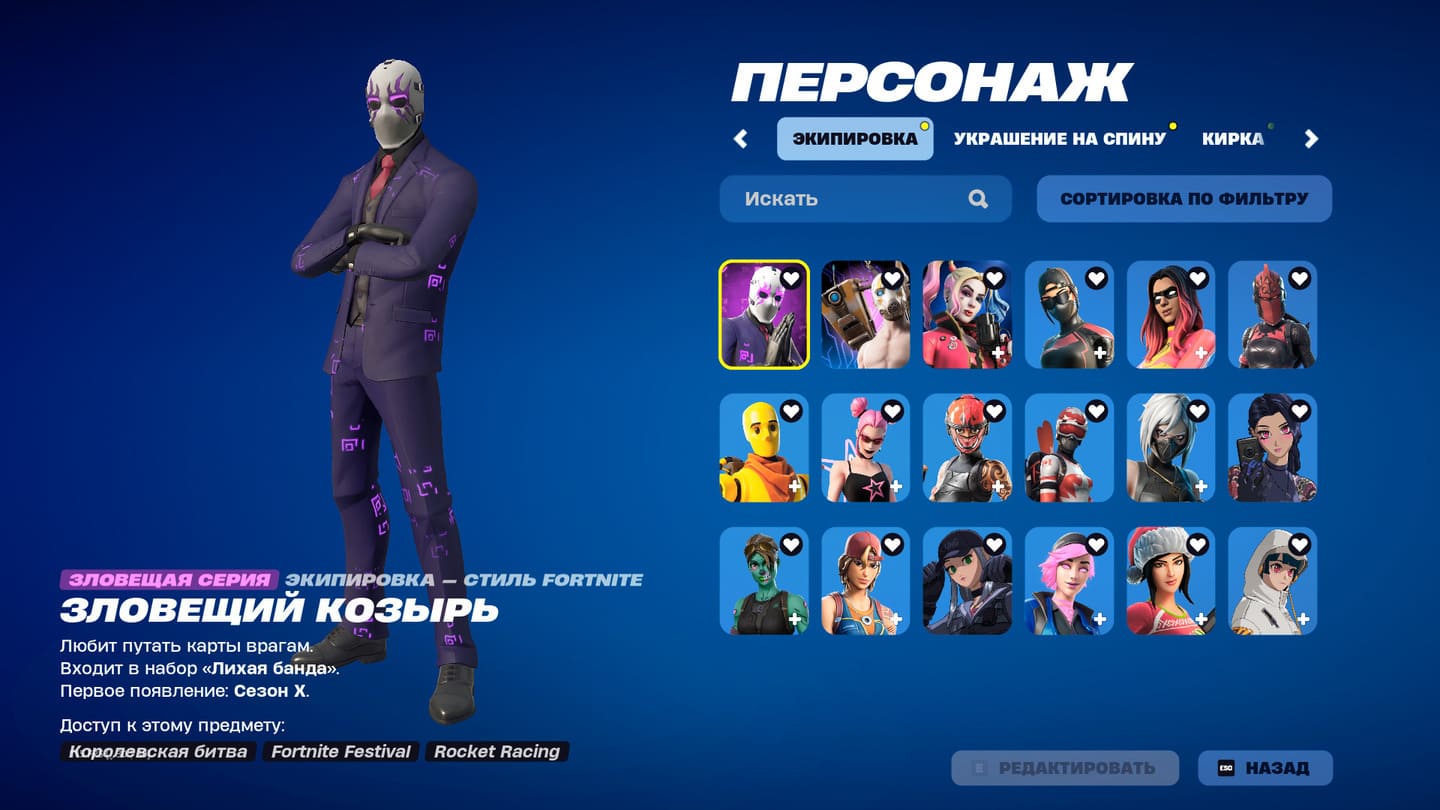 ⭐️ Боевой пропуск: 2-11 сезон⚔️ PVE💥 Всего скинов: 120🔥 Топ скины: 10+💰 1208V Bucks