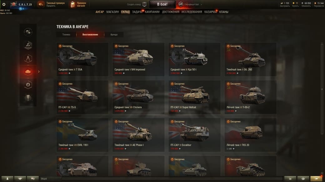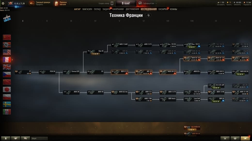 ❌Топы: Т-62А, Объект 268, ИС-7, Объект 140, ИС-4, Объект 261, VK 72.01 (K), Maus, E-100, Leopard 1, G.W. E 100, Grille 15, JagdPz E-100, E-50 Ausf. M, T110E5, T110E4, AMX 50 Foch (155), Bat.-Chatillon 25 t, AMX 50 B, FV215b (183)