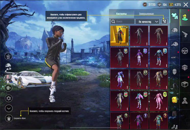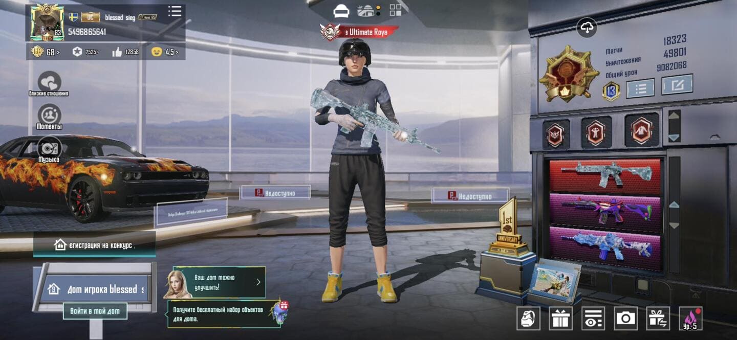 👚Топ костюмы: 65; ⭐️Royale Pass: с 5 сезонна; 🌈Скины на оружие: 36;