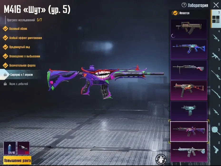 🌈Скины на оружие: 7;