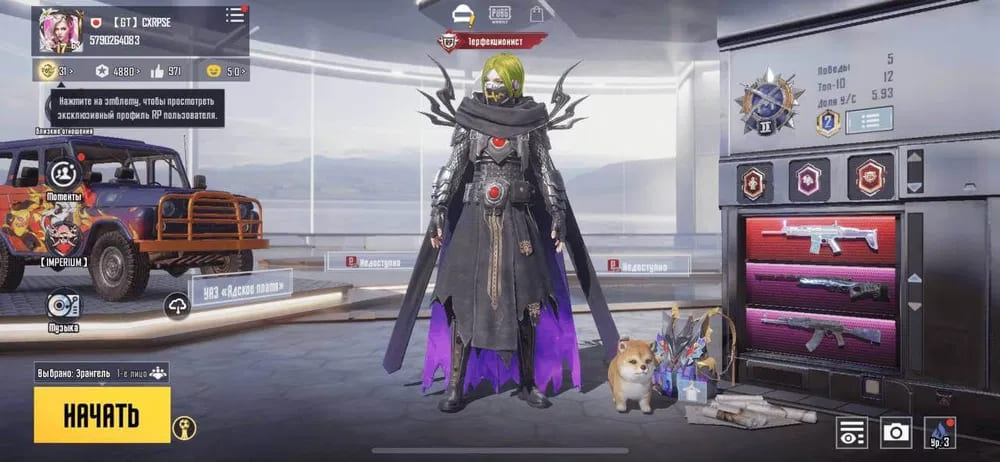 👚Топ костюмы: 31; ⭐️Royale Pass: с 6 сезонна; 🌈Скины на оружие: 36;